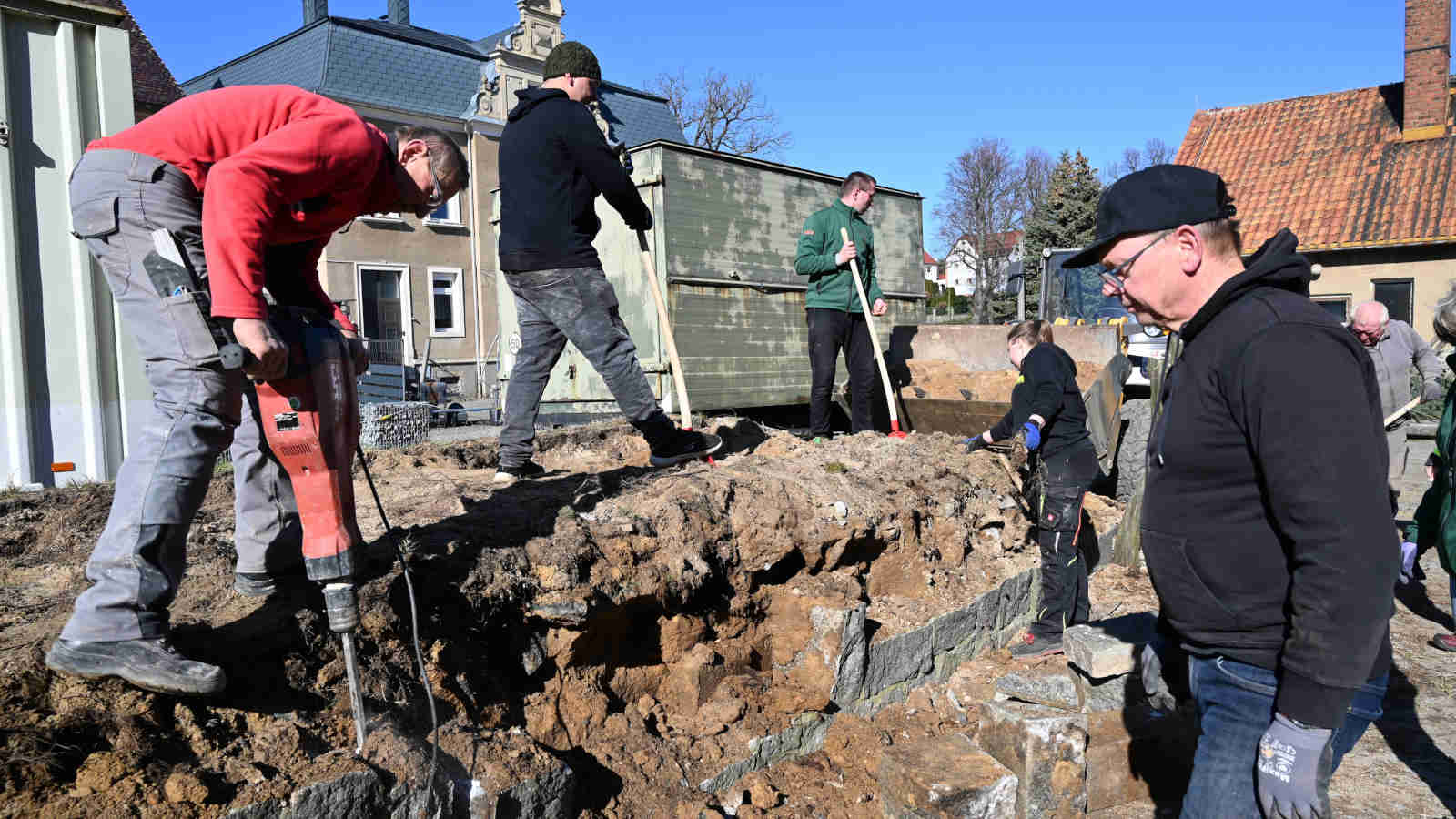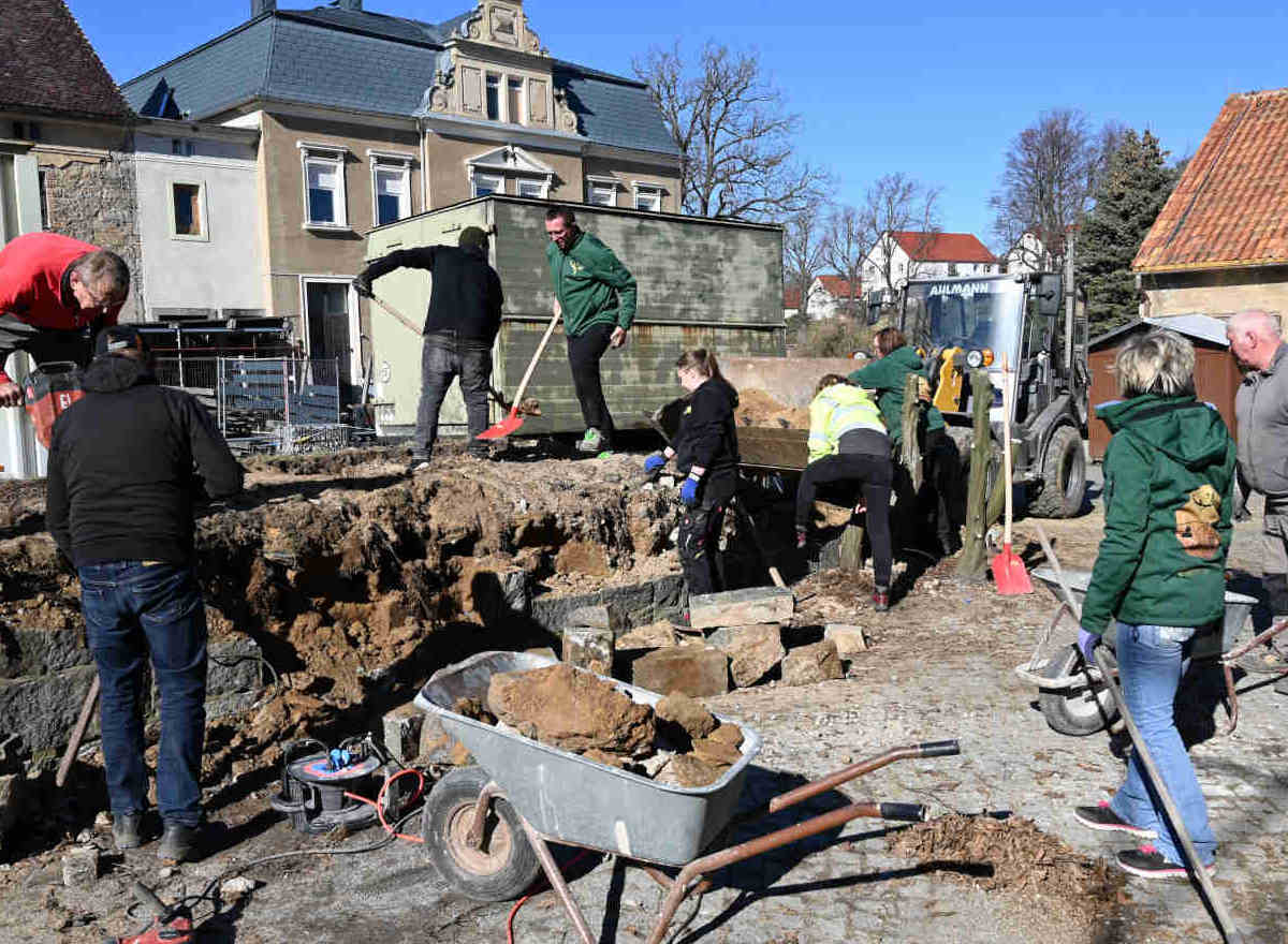 Arbeitseinsatz am 29.12.2023 - erste Grabungsarbeiten für den Regenwasser- und Abwasseranschluss